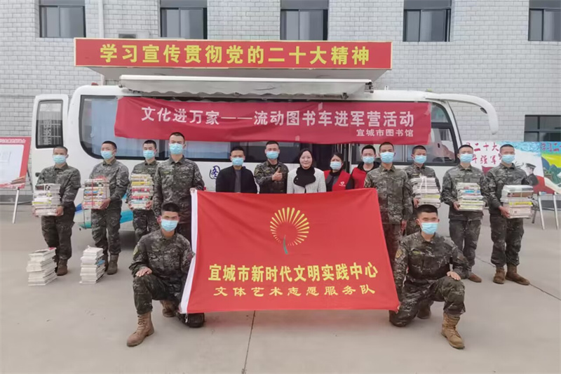 本網(wǎng)訊通訊員李黎報道:近日,宜城市文化和旅游局、武警襄陽某部隊聯(lián)合開展"軍民魚水情"聯(lián)歡活動和文化進(jìn)萬家——流動圖書進(jìn)軍營活動。