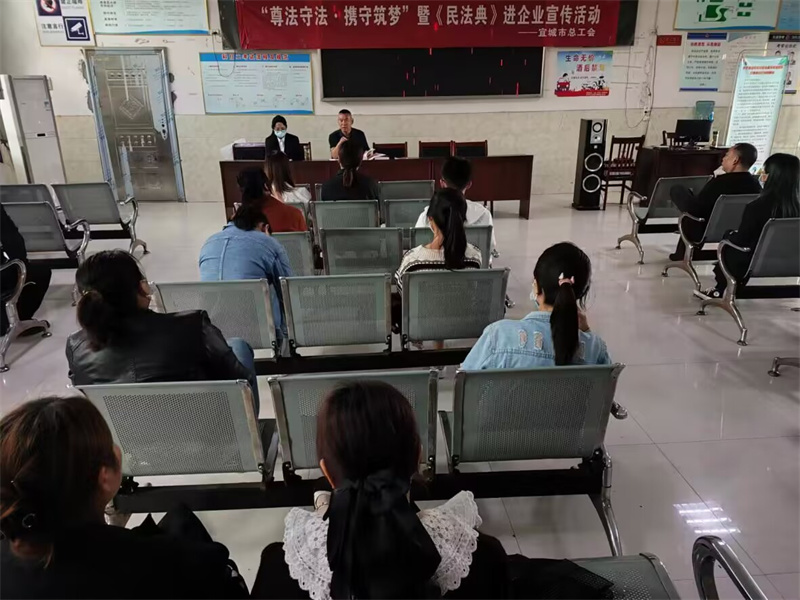 本網(wǎng)訊通訊員胡夢平 羅學(xué)勇報道:為切實(shí)讓《中華人民共和國民法典》走到群眾身邊,走進(jìn)群眾心里,營造學(xué)習(xí)法典、運(yùn)用法典、崇尚法典的濃厚氛圍,典亮群眾美好生活,5月30日,宜城市總工會開展"尊法守法·攜守筑夢"暨《民法典》進(jìn)企業(yè)宣傳活動。