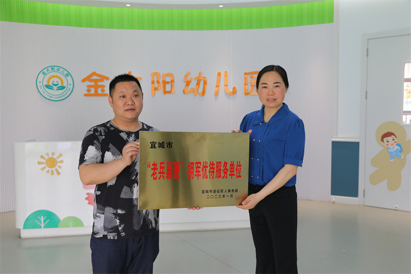 本網(wǎng)訊記者李勤 周波報(bào)道:6月1日,宜城市退役軍人事務(wù)局為“老兵襄惠”擁軍優(yōu)待服務(wù)單位金太陽幼兒園授牌,截至目前,宜城市已有54家企業(yè)簽約授牌,讓廣大軍人、退役軍人及“三屬”獲得感和榮譽(yù)感更足。