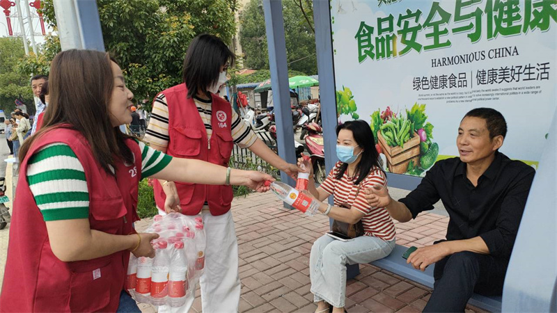在考點(diǎn)周圍,還有很多志愿者的身影,他們?yōu)榭忌凹议L(zhǎng)發(fā)放礦泉水等物資,積極助力高考。