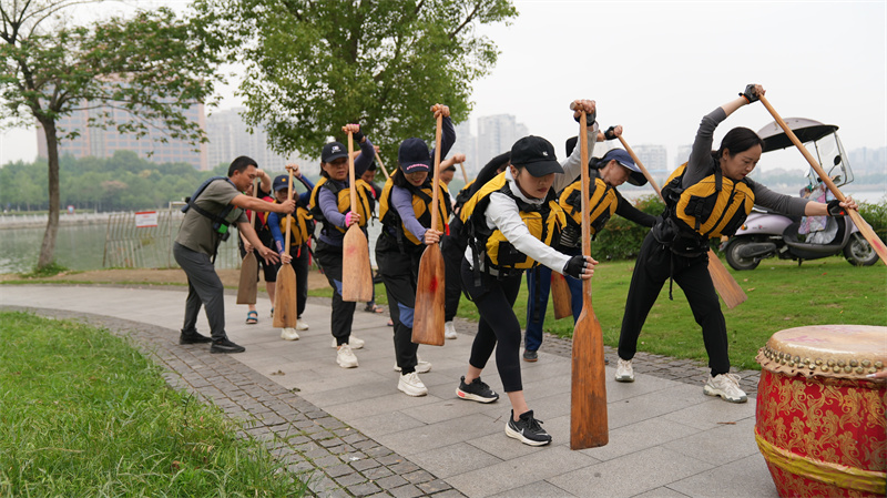 “參加這次的劃龍舟非常開心,非常興奮!”正在參加訓(xùn)練的龍舟隊(duì)員丁玉敏說:“在這里還認(rèn)識(shí)了很多的朋友,學(xué)到了很多劃龍舟的方法和技巧。每天我們都在這里訓(xùn)練2-3個(gè)小時(shí)!