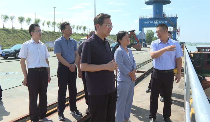 在襄陽(宜城)小河港區(qū),陳正祥實(shí)地查看了港區(qū)功能布局,了解了港區(qū)多式聯(lián)運(yùn)、臨港經(jīng)濟(jì)區(qū)建設(shè)等情況,聽取了相關(guān)匯報(bào)。