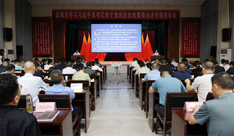本網(wǎng)訊記者李勤 李明磊報道:為深入學習領會習近平總書記關于黨的歷史的重要論述,切實增強全市廣大黨員干部學習貫徹習近平新時代中國特色社會主義思想的思想自覺、政治自覺和行動自覺,8月10日,宜城市在財培中心會堂舉辦學習習近平總書記關于黨的歷史重要論述專題報告會。市領導武義泉、肖平、李曙東、陳進雷、李源等聆聽了報告。