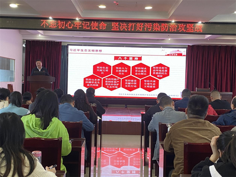 張赟從習(xí)近平生態(tài)文明思想、全國(guó)生態(tài)環(huán)境保護(hù)大會(huì)精神、我市環(huán)境保護(hù)現(xiàn)狀和問題以及污染防治措施四部分,從學(xué)習(xí)領(lǐng)會(huì)宣傳貫徹習(xí)近平生態(tài)文明思想的政治高度,客觀分析了當(dāng)前生態(tài)環(huán)境保護(hù)的嚴(yán)峻形勢(shì),并結(jié)合宜城實(shí)際提出了精準(zhǔn)靶向施策。張赟指出,宜城市委七屆七次全會(huì)的勝利召開,凝聚起全市持續(xù)深入打好污染防治攻堅(jiān)戰(zhàn)的強(qiáng)大合力,各項(xiàng)污染防治措施正穩(wěn)步推進(jìn),并產(chǎn)生積極效果。