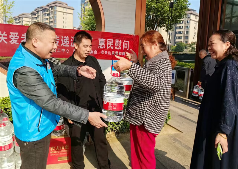 龍庭華府小區(qū)張大爺拉著慰問人員的手激動地說:“雖然一桶水值不了多少錢,但說明社會沒有忘記我們老人,更是為我們老年人的節(jié)日增添了溫馨的氛圍!”