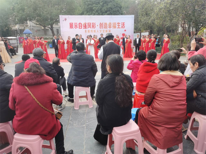 本網(wǎng)訊記者向杰廷 通訊員鄧加寧報(bào)道:12月8日,由宜城市殘聯(lián)主辦、群藝館承辦、紫陽(yáng)觀社區(qū)協(xié)辦的"展示自強(qiáng)風(fēng)采·創(chuàng)造幸福生活"關(guān)愛(ài)殘疾人文藝展演在紫陽(yáng)觀社區(qū)廣場(chǎng)舉行。