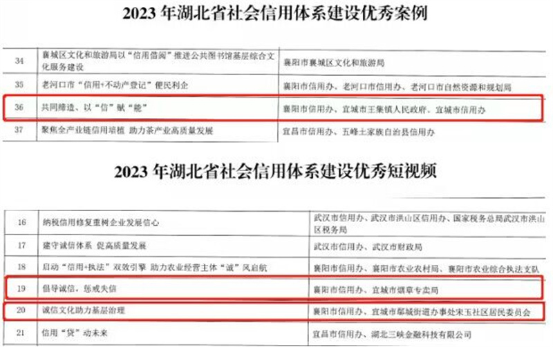 本網(wǎng)訊通訊員熊宇飛報道:近日,“2023年湖北省社會信用體系建設(shè)典型案例及優(yōu)秀短視頻征集評選”活動獲獎名單出爐,市發(fā)改局(信用辦)選送的王集鎮(zhèn)《共同締造、以“信”“賦”“能”》、市煙草局《倡導誠信、懲戒失信》、鄢城街道宋玉社區(qū)《誠信文化助力基層治理》獲評2023年湖北省社會信用體系建設(shè)典型案例及優(yōu)秀短視頻。