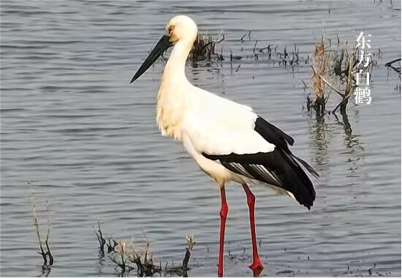 東方白鸛是一種大型涉禽,為鸛形目鸛科鳥類。成鳥體長超過1米,黑翅白體,赤腳長喙,棲息于開闊的沼澤、湖泊和潮濕草地。東方白鸛是少見的旅鳥,因繁殖分布區(qū)域狹窄,野生種群數(shù)量極為稀少,在《世界自然保護(hù)聯(lián)盟瀕危物種紅色名錄》中屬于瀕危等級,是我國Ⅰ級重點(diǎn)保護(hù)野生動物。