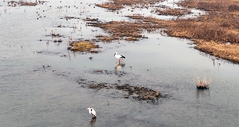 這是首次在萬洋洲國家濕地公園記錄到東方白鸛的身影,也是繼中華秋沙鴨、黑鸛、青頭潛鴨后,在濕地公園發(fā)現(xiàn)的第四種國家一級重點(diǎn)保護(hù)野生動物。鳥兒是生態(tài)環(huán)境的“晴雨表”,隨著萬洋洲濕地生態(tài)環(huán)境持續(xù)向好,越來越多的珍稀鳥類來到萬洋洲濕地棲息、中轉(zhuǎn)、繁殖或越冬,人與自然和諧共生的絢麗畫卷正徐徐展開。
