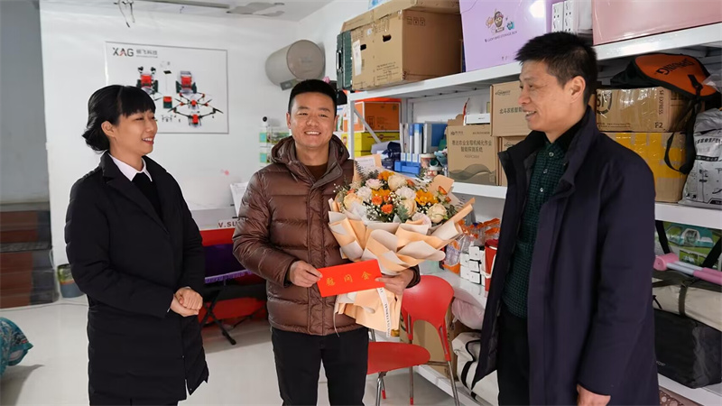在宜城市楚飛無人機(jī)科技有限公司,宜城市總工會(huì)有關(guān)負(fù)責(zé)人與李遠(yuǎn)鵬交談,關(guān)切詢問李遠(yuǎn)鵬的生活、工作和健康狀況,傾聽他的訴求和意見建議,并為他送去鮮花和慰問金。同時(shí),希望李遠(yuǎn)鵬珍惜榮譽(yù),再接再厲,繼續(xù)發(fā)揮好先進(jìn)帶頭作用,當(dāng)好標(biāo)桿,以實(shí)際行動(dòng)為宜城建設(shè)發(fā)展做出應(yīng)有貢獻(xiàn)。