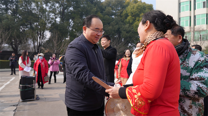 宜城市委書(shū)記武義泉,市人大常委會(huì)主任陳進(jìn)雷,市政協(xié)主席李源,市委常委、宣傳部部長(zhǎng)蒙瑾,市委常委、市委辦主任曾勁松,副市長(zhǎng)、公安局局長(zhǎng)張雪峰與廣大市民一同觀看了演出,并向參演群眾和圍觀市民拜年,祝大家新年快樂(lè),闔家幸福!