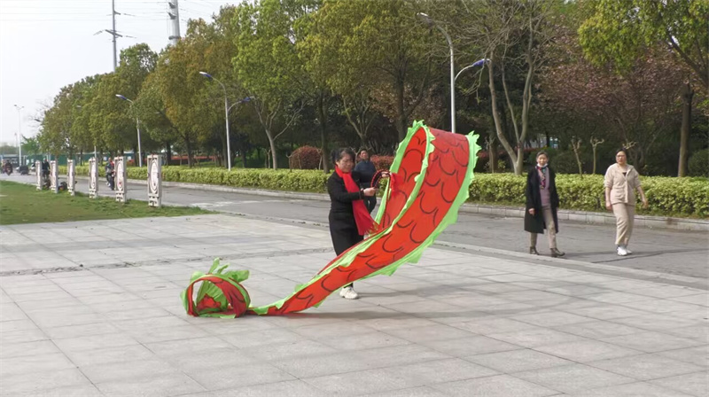春日回暖,來公園運動健身的市民也多了起來。在廣場上舞龍彩帶的劉阿姨介紹到:“每天早上都會來公園這里鍛煉健身,一邊聞著花香,一邊運動出汗,特別開心自在!