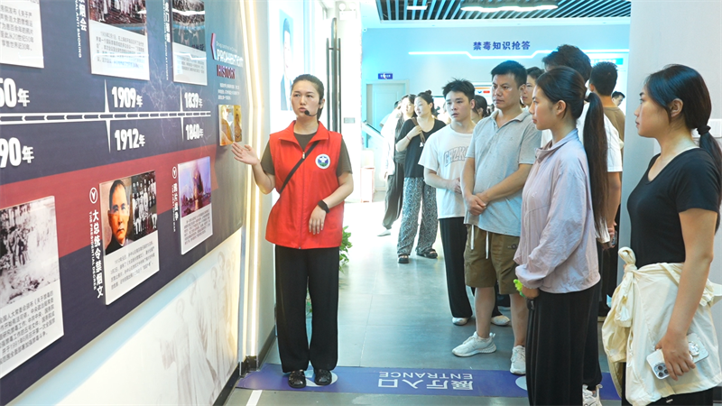 在講解員的引導(dǎo)下,市文旅局的干部職工通過觀看圖文展板、實物陳列、多媒體演示等形式,系統(tǒng)學(xué)習(xí)毒品種類、危害及相關(guān)法律法規(guī),深刻認(rèn)識到毒品對個人健康、家庭幸福和社會穩(wěn)定的嚴(yán)重危害。在互動體驗區(qū),大家近距離觀察毒品仿制品,直觀了解各類毒品形態(tài),有效提升辨識能力和防范意識。