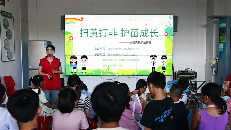 本網(wǎng)訊記者劉毅 通訊員汪麗 胡雪蕊 楊宇軒報道:8月13日,宜城市新時代文明實踐服務中心聯(lián)合宜城愛爾眼科醫(yī)院開展“掃黃打非·護苗成長”文明實踐公益活動,為愛心托管班的孩子們帶來一堂生動的知識課。