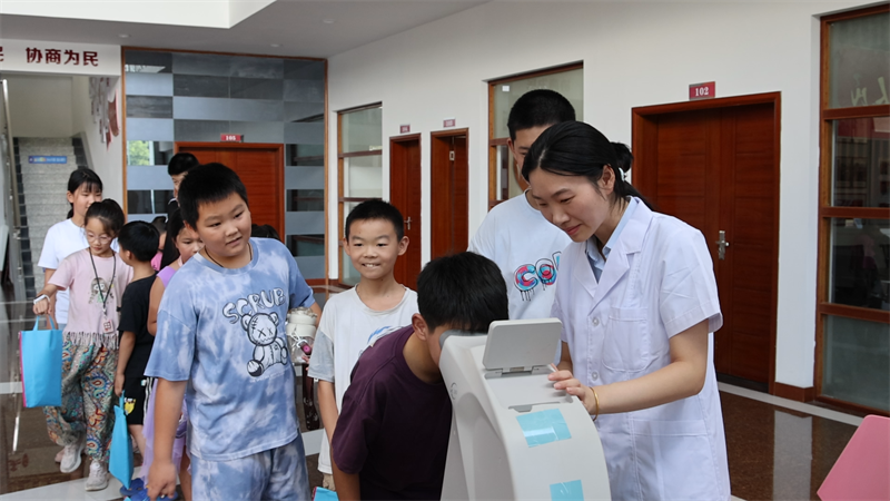 醫(yī)護人員為小朋友們檢測視力