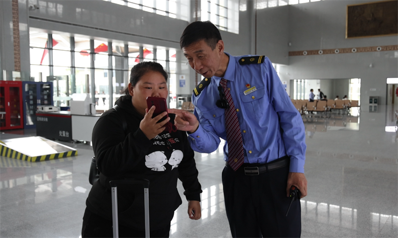 李琦指導(dǎo)旅客改簽