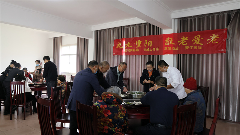 本網(wǎng)訊記者李勤 通訊員曾雨琪報道: 金秋送暖,情滿重陽。10月29日,宜城市退役軍人事務局聯(lián)合愛心餐飲企業(yè)簡樸寨、土缽菜、乾溪酒店、豪江國際酒店走進市光榮院,開展“九九重陽 愛老敬老”主題活動,與老人們共度溫馨歡樂的重陽佳節(jié)。
