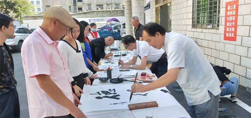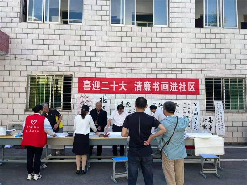 社區(qū)院內(nèi),書畫愛好者用墨香傳遞廉潔文化,用色彩繪就美好生活,以實際行動迎接黨的二十大,共慶國慶佳節(jié),吸引不少小區(qū)居民駐足觀看。