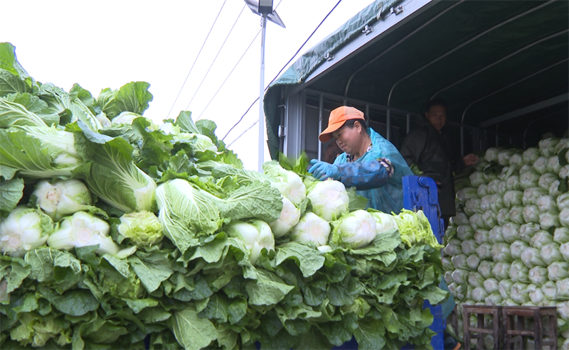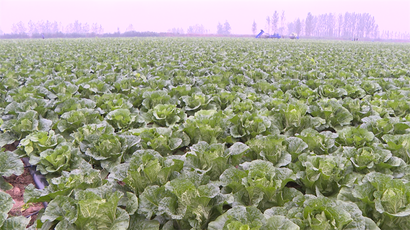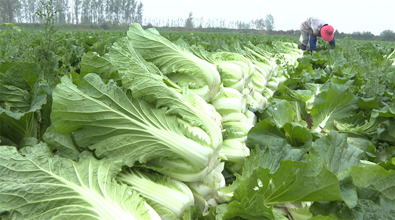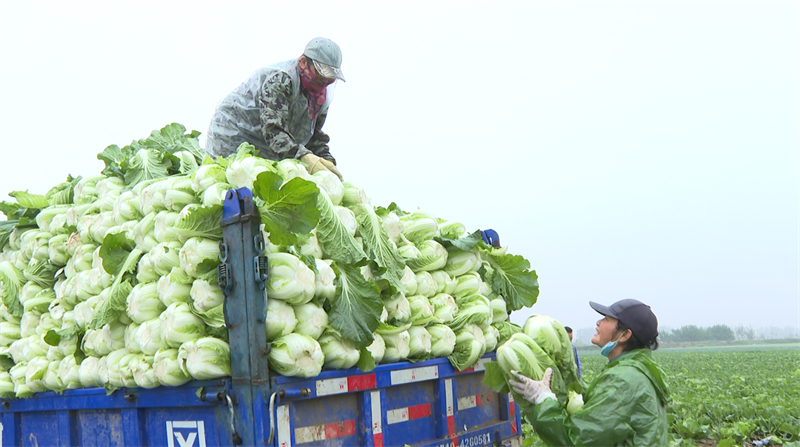在采收現(xiàn)場,一顆顆大白菜郁郁蔥蔥、長勢喜人。田間地頭隨處可見農(nóng)民們采摘、精揀的身影,收購商們也抓緊時(shí)間裝車、運(yùn)輸大白菜,農(nóng)田里呈現(xiàn)出一派繁忙的豐收景象。